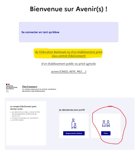 Désormais, la plateforme est accessible depuis l'ENT dans la rubrique "Orientation" > Avenir(s)